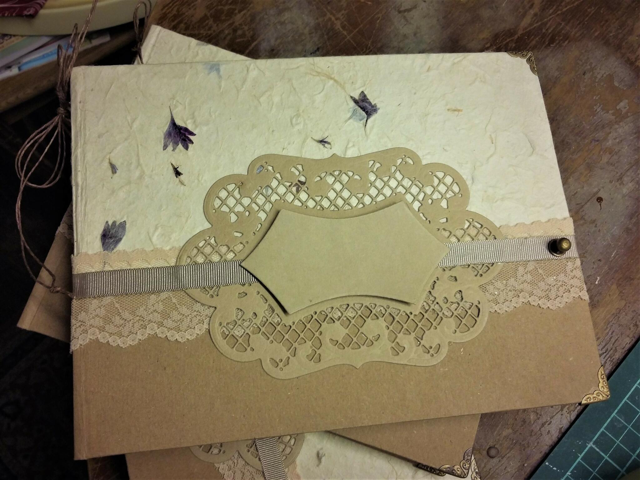 Album valmistatud käsitööna, sisuks 30 lehte,loodusvalge, vahelehtedega.